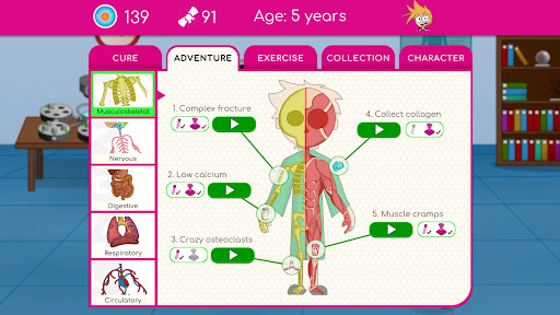 Human Body Adventure is an educational video mobile game for children from Six years. Improve your knowledge of the anatomy of human body and its systems: musculoskeletal, circulatory, respiratory and more!